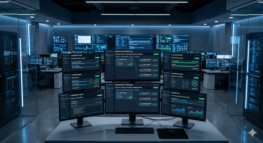 One agent researches. Another writes. A third checks accuracy. A fourth schedules and executes. Together, they function like a team that never sleeps.