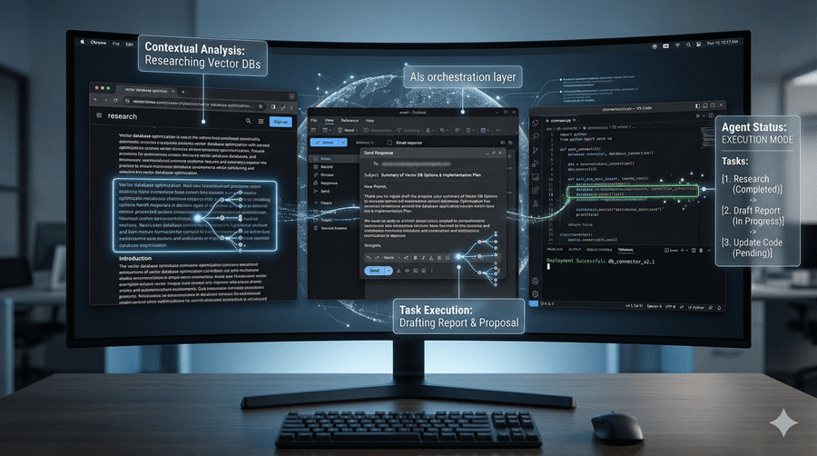 The shift is simple but profound. Instead of telling me what to do, AI systems can now open applications, navigate interfaces, write emails, and execute workflows on my behalf.