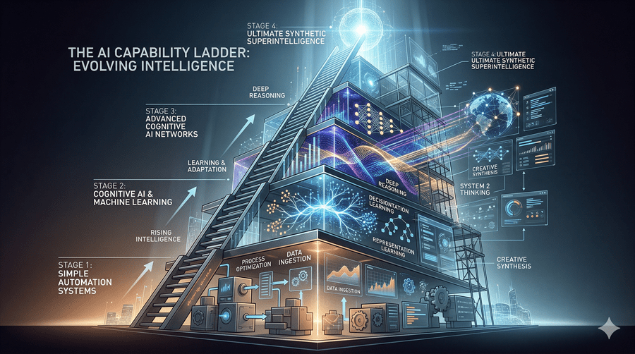 But the more I explore it, the more I see it as a ladder. Each step represents a different level of capability, from simple automation to something far beyond human comprehension.