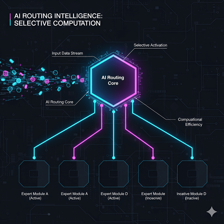 When text enters the model, it does not activate the entire network. Instead, a routing system selects only the experts who are most relevant to the task.